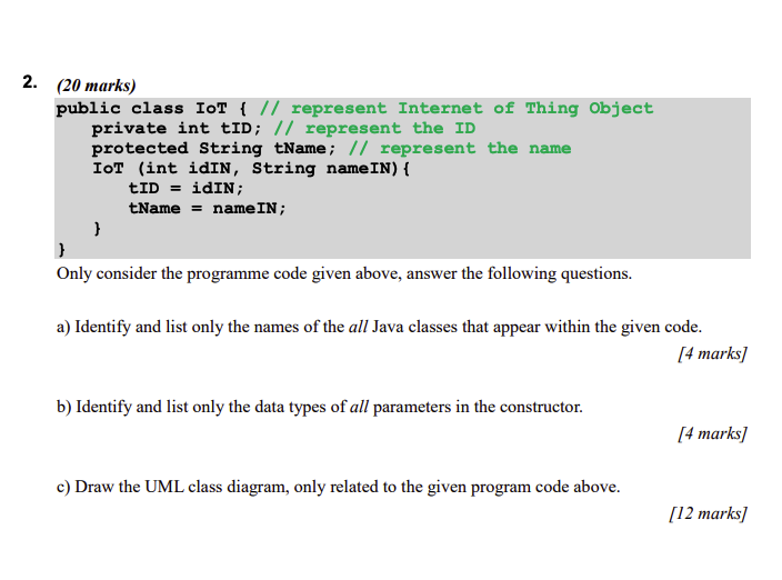 Solved 2 20 Marks Public Class Iot Represent Chegg Com